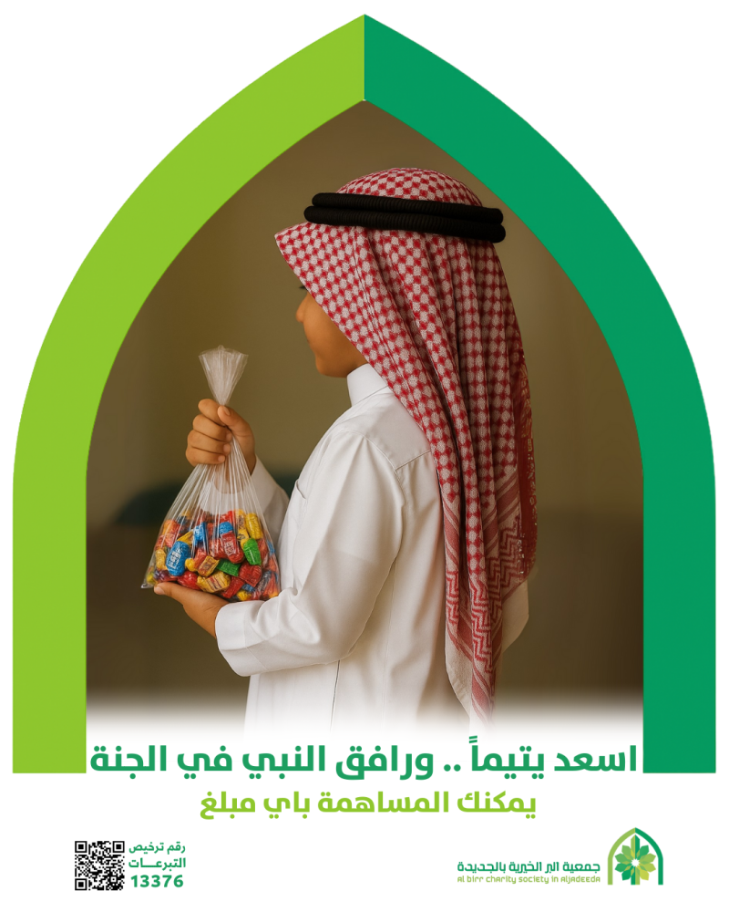 سعادة اليتيم تبدأ بابتسامة تُرسم على وجهه من خلال لمسة حنان أو عطاء بسيط فالتبرع لهم ليس فقط عمل خير، بل هو استثمار في قلوب صغيرة تستحق الفرح.